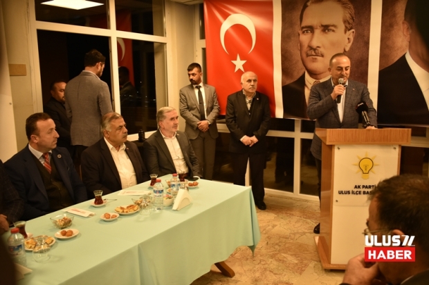 Dışişleri Bakanımız Mevlüt Çavuşoğlu, Ak Parti Grup başkanvekili, Bartın milletvekili Yılmaz Tunç, Ak Parti İl Başkanı Yaşar Arslan, MHP İl Başkanı Ercüment Özçelik, Yeniden Refah Partisi İl Başkanı Ziver Gebiç, Ak Parti Milletvekili aday adayları, Belediye Başkanları Hasan Hüseyin Uzun, Yaşar Dönmez, Ak Parti Ulus İlçe Başkanları Hikmet Çalık, Şenol Rıdvan Sert, Mhp İlçe Başkanı Baskın Mısırlıoğlu, Yeniden Refah Partisi Ulus İlçe Başkanı Şenol Yılmaz; Ulus ilçe belediye Otelinde Köy muhtarlarıyla ve vatandaşlarımız ile bir araya geldi. Toplantıya katılan vatandaşlar "Ulus ilk defa bir Dışişleri Bakanını ağırlıyor, İlçemizde Bakanımız Mevlüt Çavuşoğlu'nu ağırlamaktan gurur duyduk, Ulus'a vermiş oldukları değerden dolayı çok memnun olduk, İnşallah 14 Mayıs'ta Cumhurbaşkanı Recep Tayyip Erdoğan'ı tekrar Cumhurbaşkanı olarak ülkemizin başında göreceğiz, dışişleri bakan'ımızı tekrar ilçemizde ailesiyle görmeyi , misafir olmalarını niyaz ederiz , kendilerine teşekkür ederiz."dediler .
