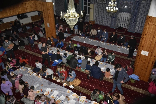 - İlk iftarım,ilk orucum iftar programında Ulu Camii halı kaplı zemininde yer sofrası kuruldu.Programa ilçe Kaymakamı Mehmet Sadık Kılıç ,Belediye başkanı Hasan Hüseyin Uzun ve ilçe protokolu Hayırseverlerin katkılarıyla 500 den fazla çocuk ve velileriyle iftar açtı.